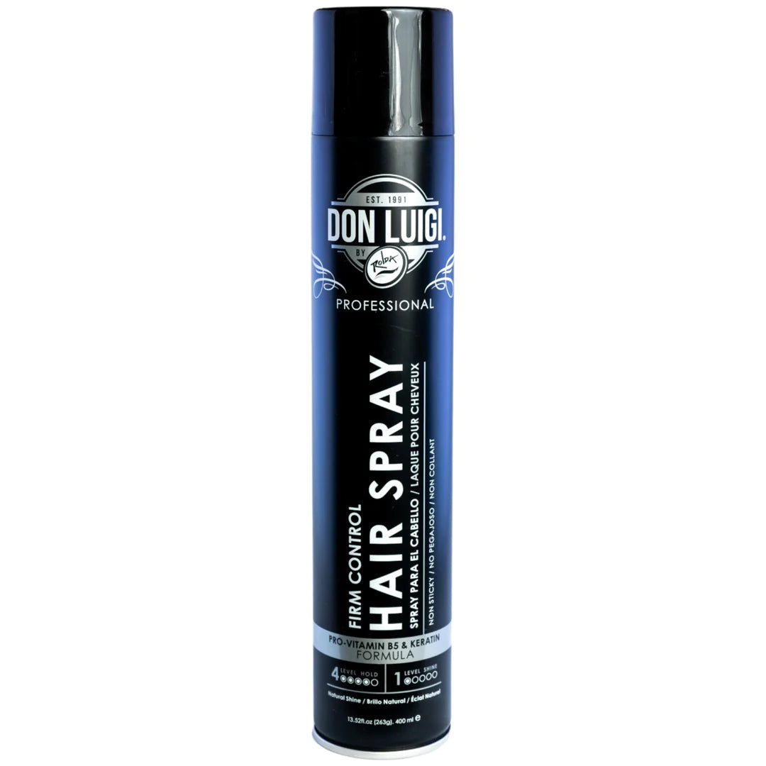 Our new Don Luigi limited edition hair sprays use a formula that features Pro-Vitamin B5 as a means of protecting your hairstyle from moisture and humidity while also providing a strong and voluminous hold.